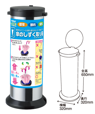 交換式カートリッジをご購入いただけます。簡単な操作で傘の水滴を吸収し、